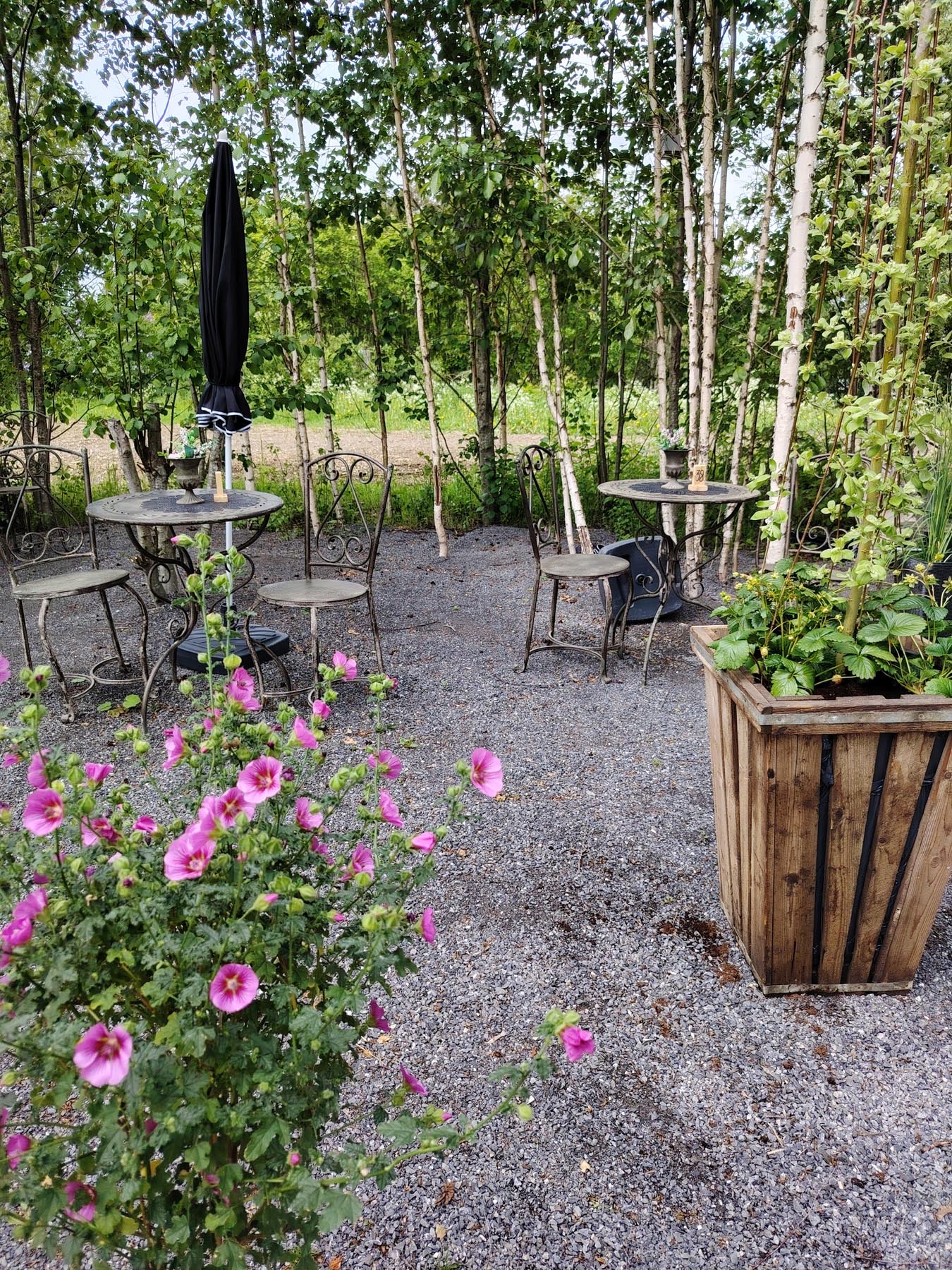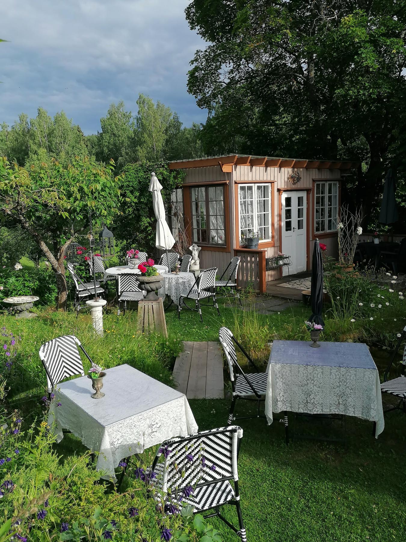 Ønsker du å sitte litt skjermet? Lysthuset passer for 6-8 person og i Orangeriet har vi sitteplass for 4 personer.